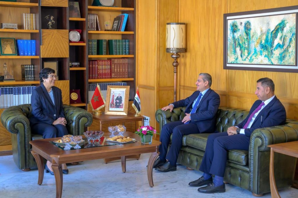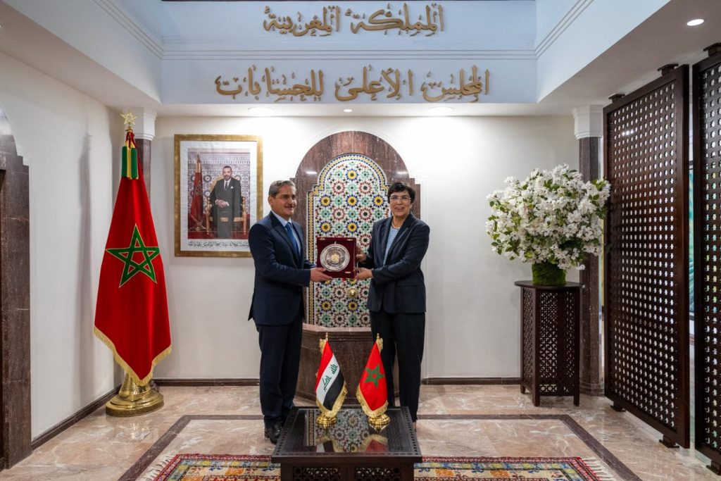 Madame Zineb EL ADAOUI, Premier Président de la Cour des comptes, a présidé, ce mercredi, au siège de la Cour, une réunion de travail avec M. Mohammad Ali Al-Lami, Président de la Commission d’intégrité fédérale de la République d’Irak, accompagné d’une délégation de haut niveau. Ont également pris part à cette rencontre Son Excellence l’Ambassadeur de la République d’Irak à Rabat ainsi que des responsables de la Chambre de déclaration obligatoire de patrimoine à la Cour.