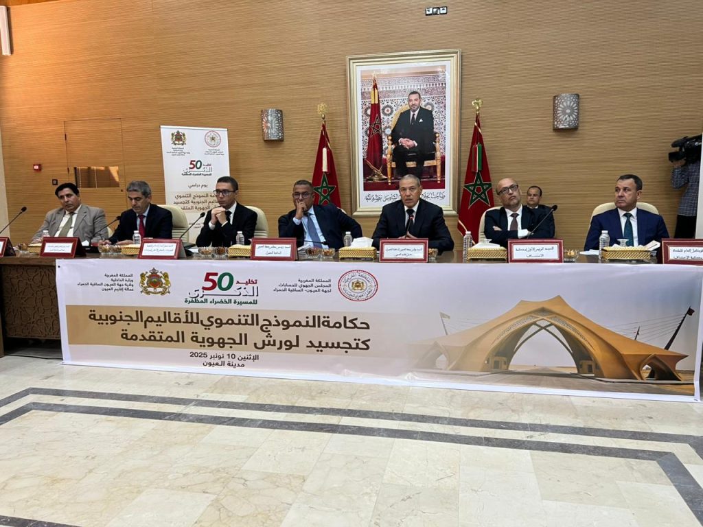La Cour régionale des comptes de Laâyoune-Sakia El Hamra, en partenariat avec la Wilaya de la région, a organisé, le lundi 10 novembre 2025, une journée d’étude autour du thème :« La gouvernance du modèle de développement des provinces du Sud comme concrétisation du chantier de la régionalisation avancée » avec la participation de nombreux responsables locaux et d’acteurs territoriaux ainsi que des experts en développement et gouvernance territoriale. Cette initiative s’inscrit dans le cadre de la commémoration du 50ème anniversaire de la Marche Verte, étant un événement national porteur de valeurs de patriotisme et d’attachement au développement des provinces du Sud dans le cadre de la régionalisation avancée.